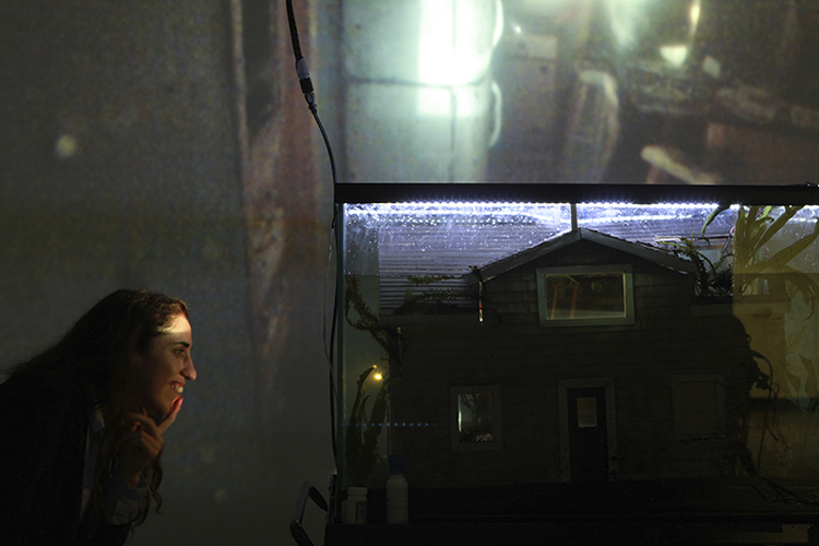 A house under water awaits the spectator to search for the struggling characters living inside the house, sharing the space with the fish. on a process of seeing and being seen.