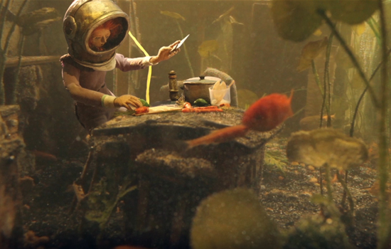 A house under water awaits the spectator to search for the struggling characters living inside the house, sharing the space with the fish. on a process of seeing and being seen...